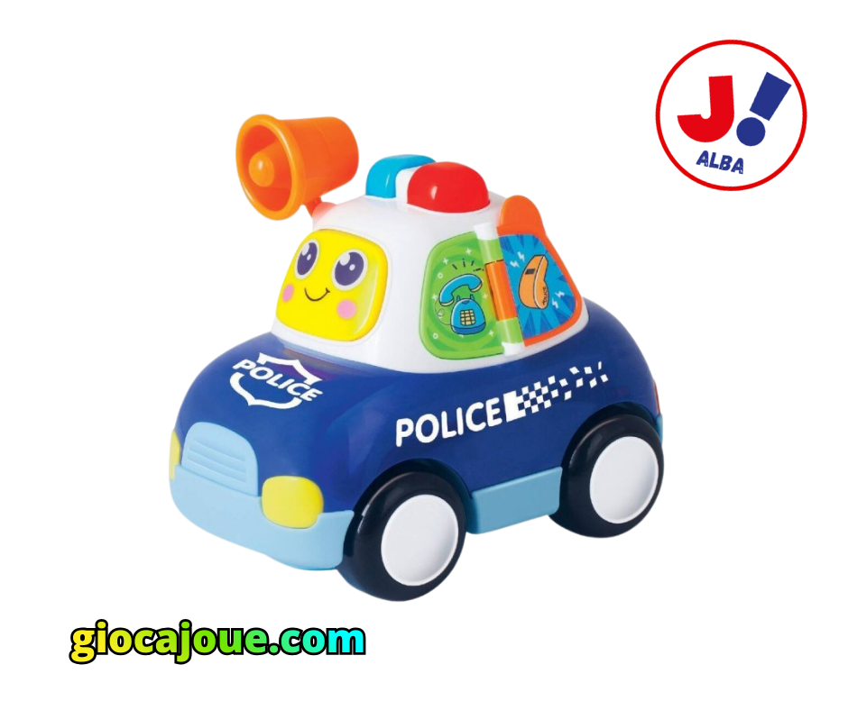 Colorata, interattiva e ricca di funzioni, questa simpatica auto di pattuglia accompagna il bambino nella scoperta di luci, suoni, cause-effetto e movimento, stimolando allo stesso tempo motricità fine e grossolana.